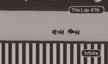 Funny Racer can be controlled with both the D-Pad and/or the crank, offering flexibility for different playstyles. Some functions require the use of the D-Pad. By default, B accelerates, and A brakes; this can be switched in settings, but non-racing controls are not affected.
